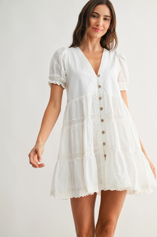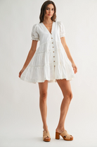 Flirty, feminine, and effortlessly stylish — this button-front mini dress is designed to make a statement. Featuring soft puff sleeves and a flattering mini-length silhouette, it blends classic charm with modern appeal.