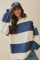 The Butter Contrast Long Sleeve features bold, thick stripes in pineapple yellow and deep navy for a playful yet timeless look. Designed with a classic long-sleeve silhouette, this top balances bright color with strong contrast. Crafted from a substantial, cozy fabric, it offers a comfortable fit with a polished feel, making it an easy everyday statement piece that stands out while staying effortlessly wearable.