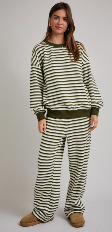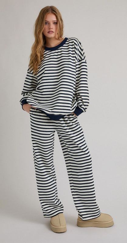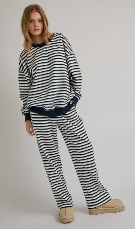Stay cozy and stylish with this striped sweatshirt pant, perfect for lounging or casual outings. Designed for ultimate comfort, it features a soft, relaxed fit that moves with you, while the eye-catching stripes add a playful, modern touch. Pair it with your favorite sneakers or a casual top for an effortlessly chic, laid-back look that combines comfort and style in one.
