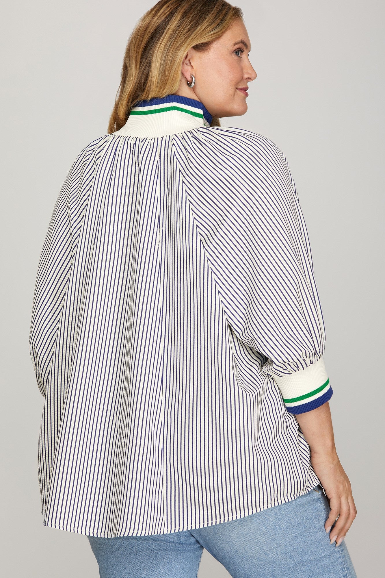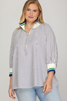 Elevate your casual wardrobe with this versatile 3/4 sleeve half-zip striped top. Designed for comfort and style, the sporty half-zip detail adds a modern edge, while the classic stripe pattern keeps it timeless.