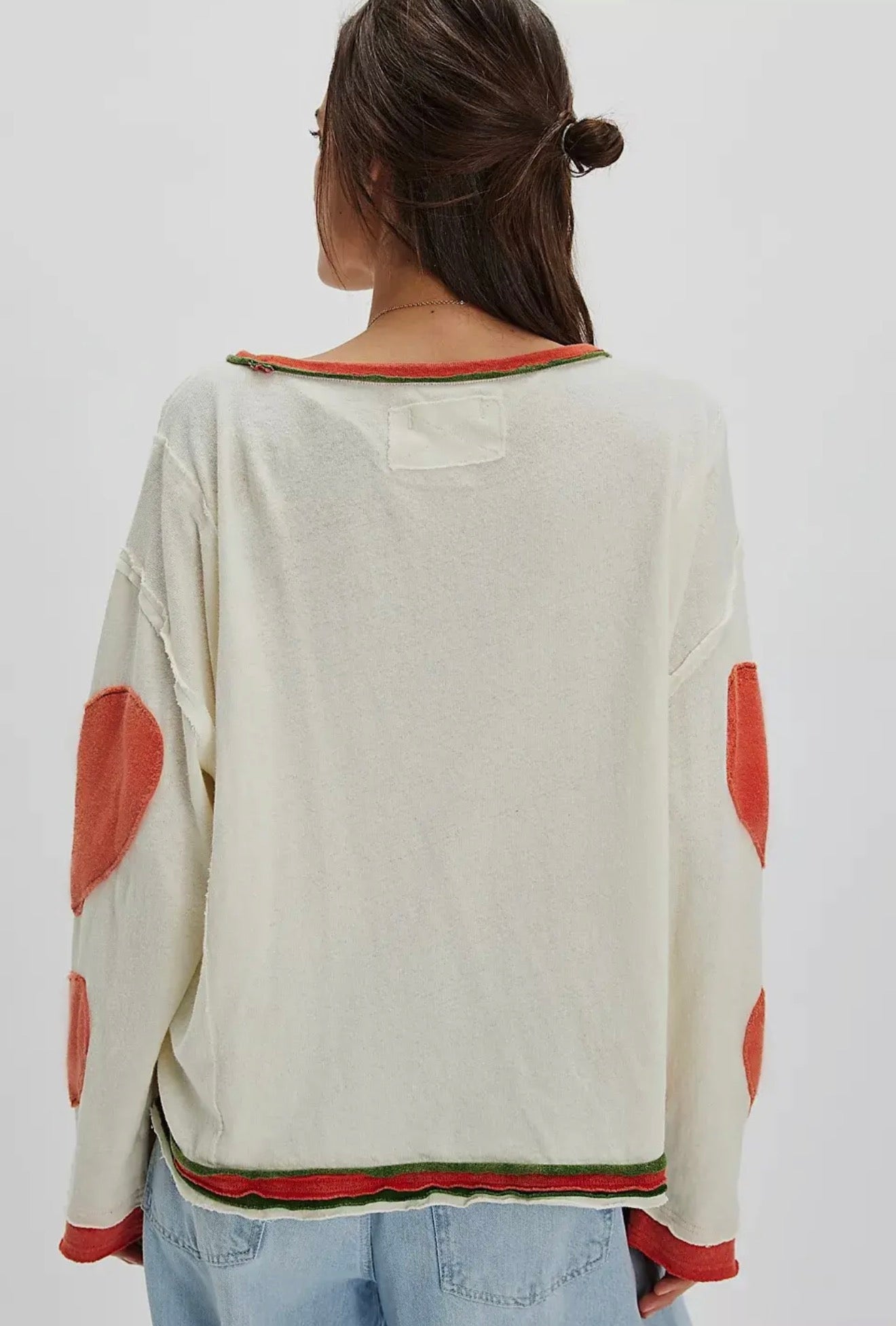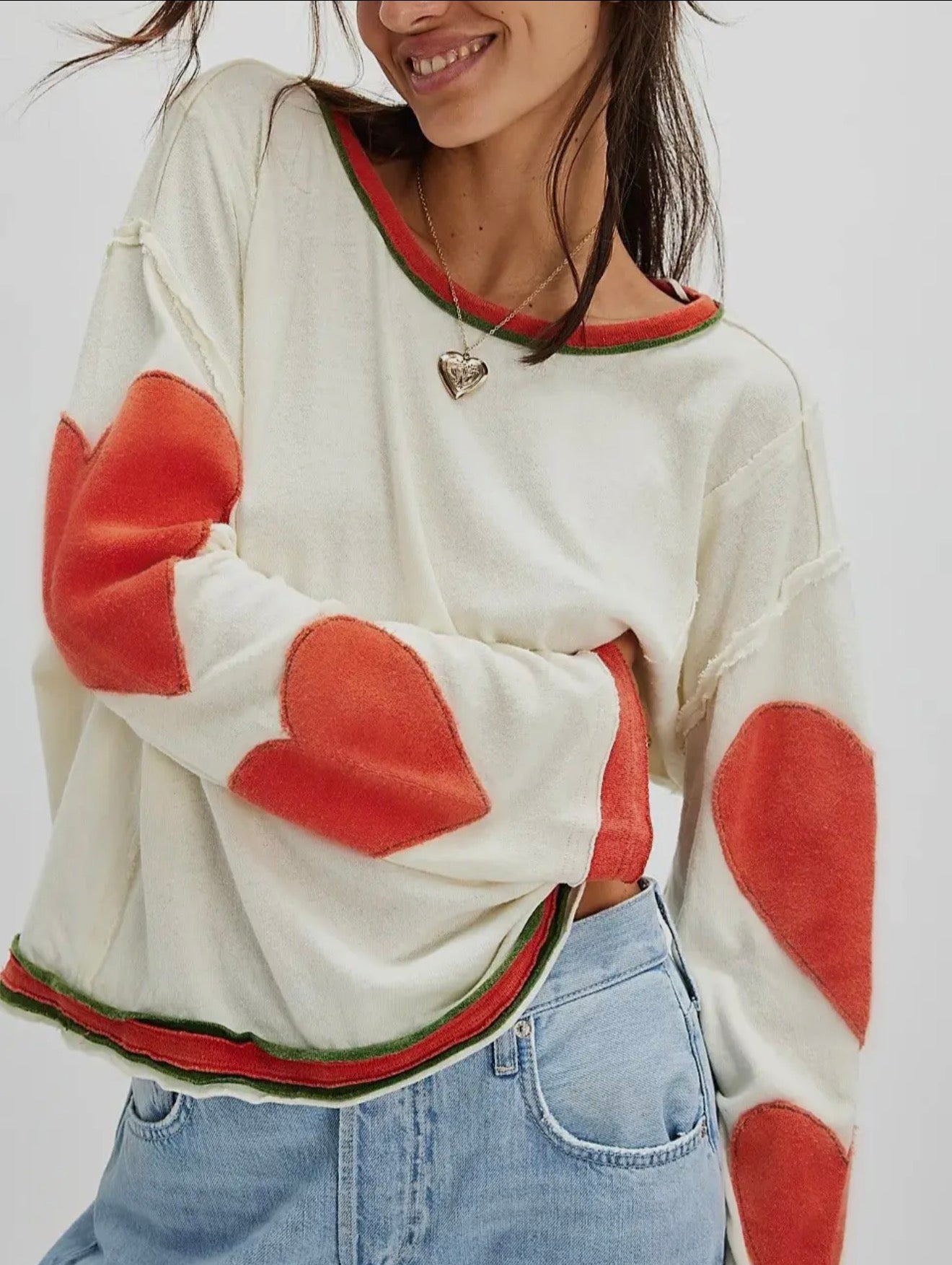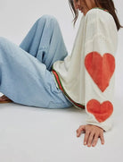 Fall head over heels for this effortlessly cute transitional piece š This lightweight ivory top features bold red heart patches down each sleeve, adding the perfect pop of color for Valentineās Day and beyond. The relaxed, slightly oversized fit makes it easy to throw on and go, while the soft, breathable fabric keeps it comfortable as we move into spring.