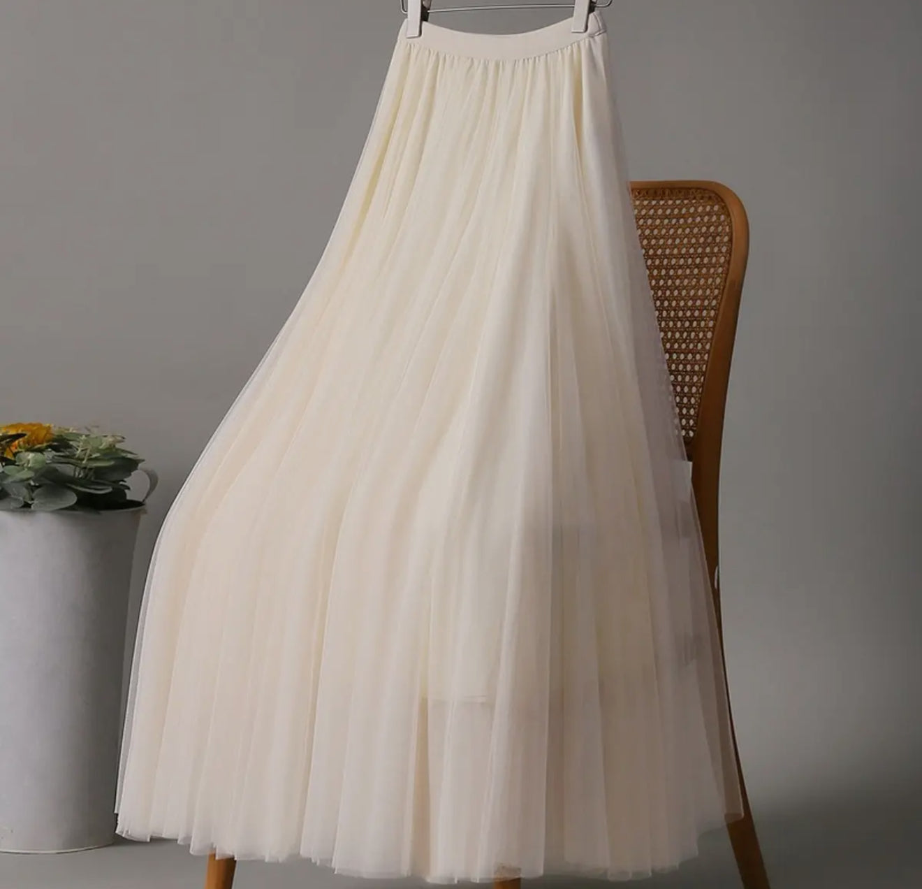 This solid-color mesh tulle A-line skirt is light, feminine, and effortlessly elegant. Designed with a comfortable elastic waistband, it features soft layers of airy mesh tulle that create beautiful movement and a flattering A-line shape. Available in beige and pink, it’s easy to dress up with a blouse or keep sweet and simple with a tee or sweater—an everyday romantic staple with endless styling potential. 🤍💗