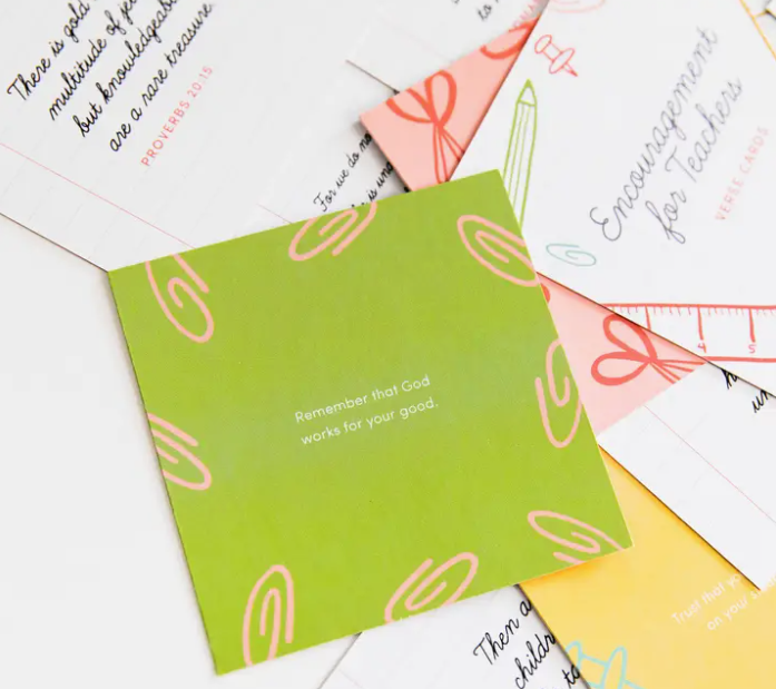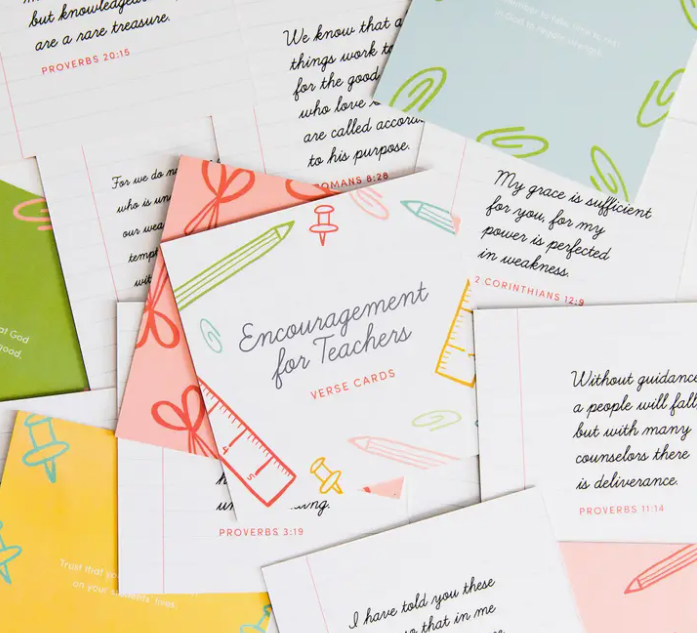 Do you know an educator who feels overwhelmed or exhausted? Do you wish you could encourage them every day? Encourage and equip them with God’s Word with verse cards just for teachers! These 15 cards will remind private, public, or homeschool teachers of the value God has for learning and the immense love He has for each one of us. Each Encouragement for Teachers Verse Card will equip educators with a verse on one side, and encourage teachers with an inspiring message on the other side! These cards make the perfect gift for start-of-school year days, end-of-the-year celebrations, Christmas, Easter, Valentine’s Day, or Mother’s Day.