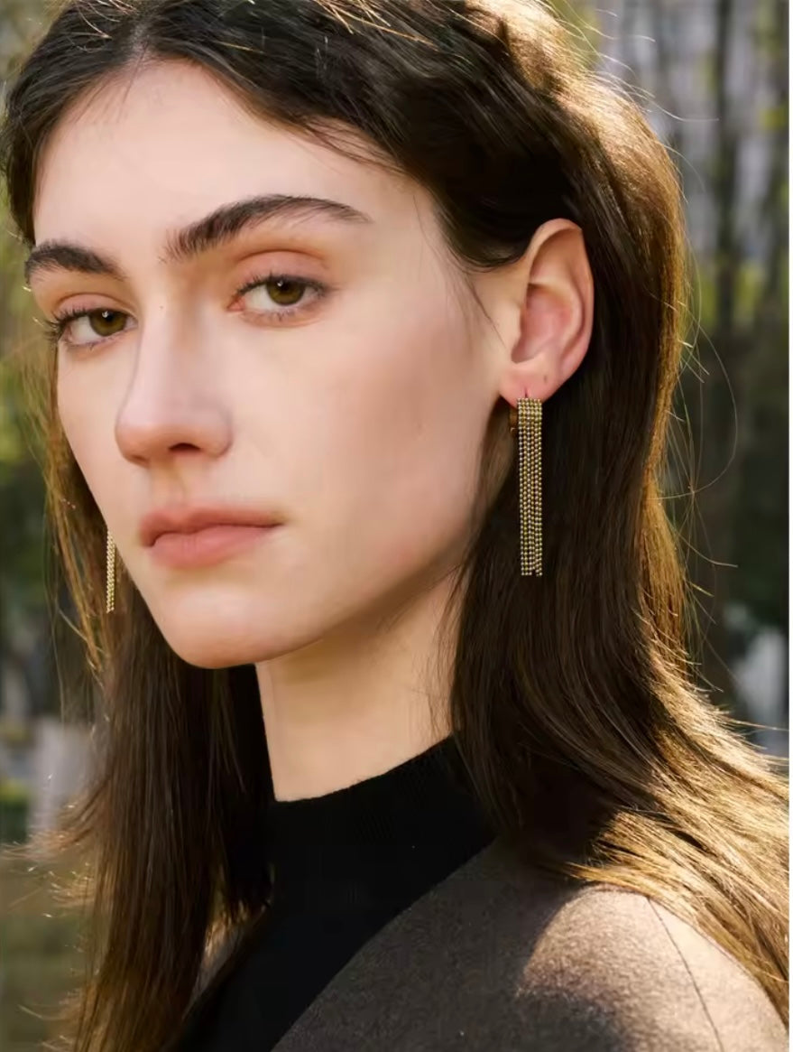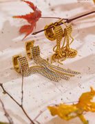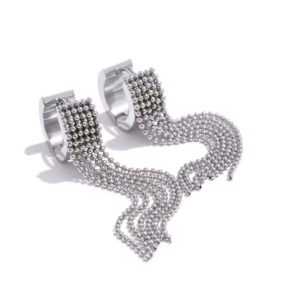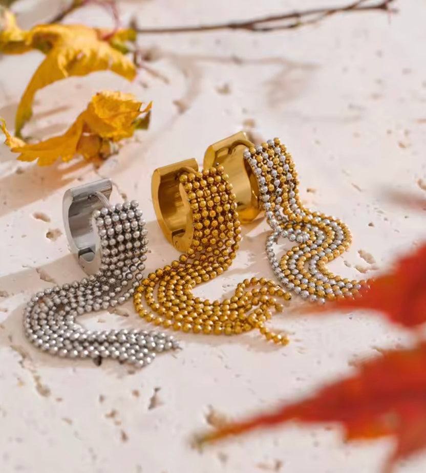 Add a playful swing to your look with our Fringed Hoops. Crafted from durable stainless steel, these waterproof hoops feature shimmering beaded fringe that moves beautifully with every step—perfect for everyday wear or dressing up without worry.