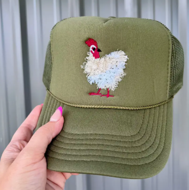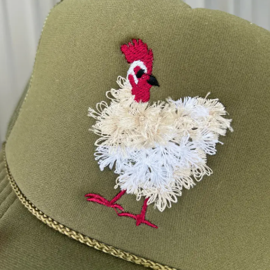 Add a playful touch to any outfit with this whimsical embroidered chicken cap! Featuring a charming hand-stitched design of our feathered friends, this cap is perfect for bird lovers, casual farm days, or anyone who loves to add a little fun to their everyday style. Comfortable, adjustable, and full of personality, it’s more than just an accessory—it’s a statement piece that’s sure to turn heads.
