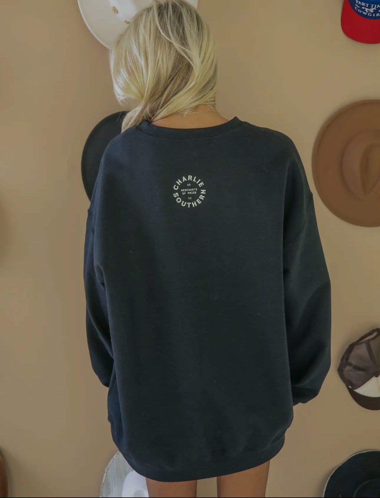 This sweatshirt is giving vintage Garth Brooks and we are here for it! this western black pullover is the American pastime you need! style this for a winter or summer concert and don't forget the Stetson!