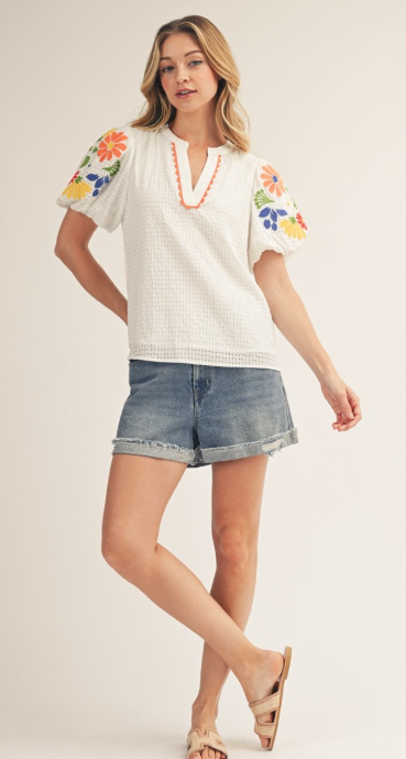 Easy to style with denim, skirts, or tailored bottoms, this top is perfect for warm-weather days and effortless everyday charm.
