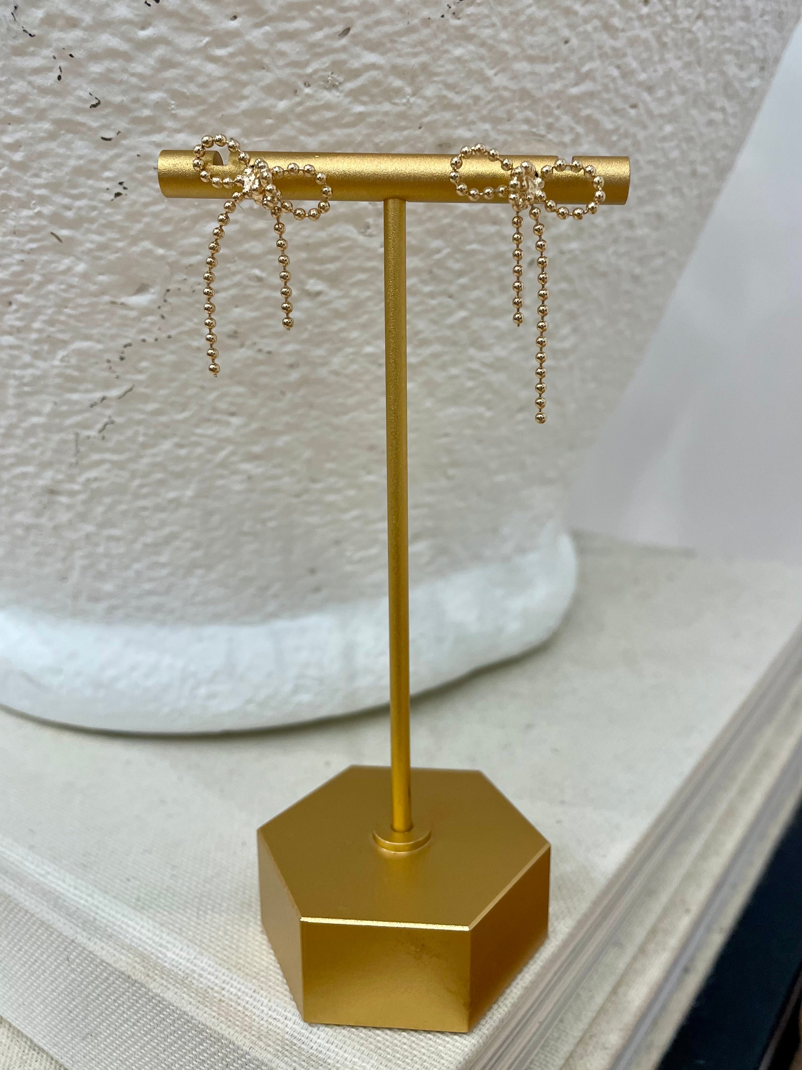 Gold Beaded Bow Earrings