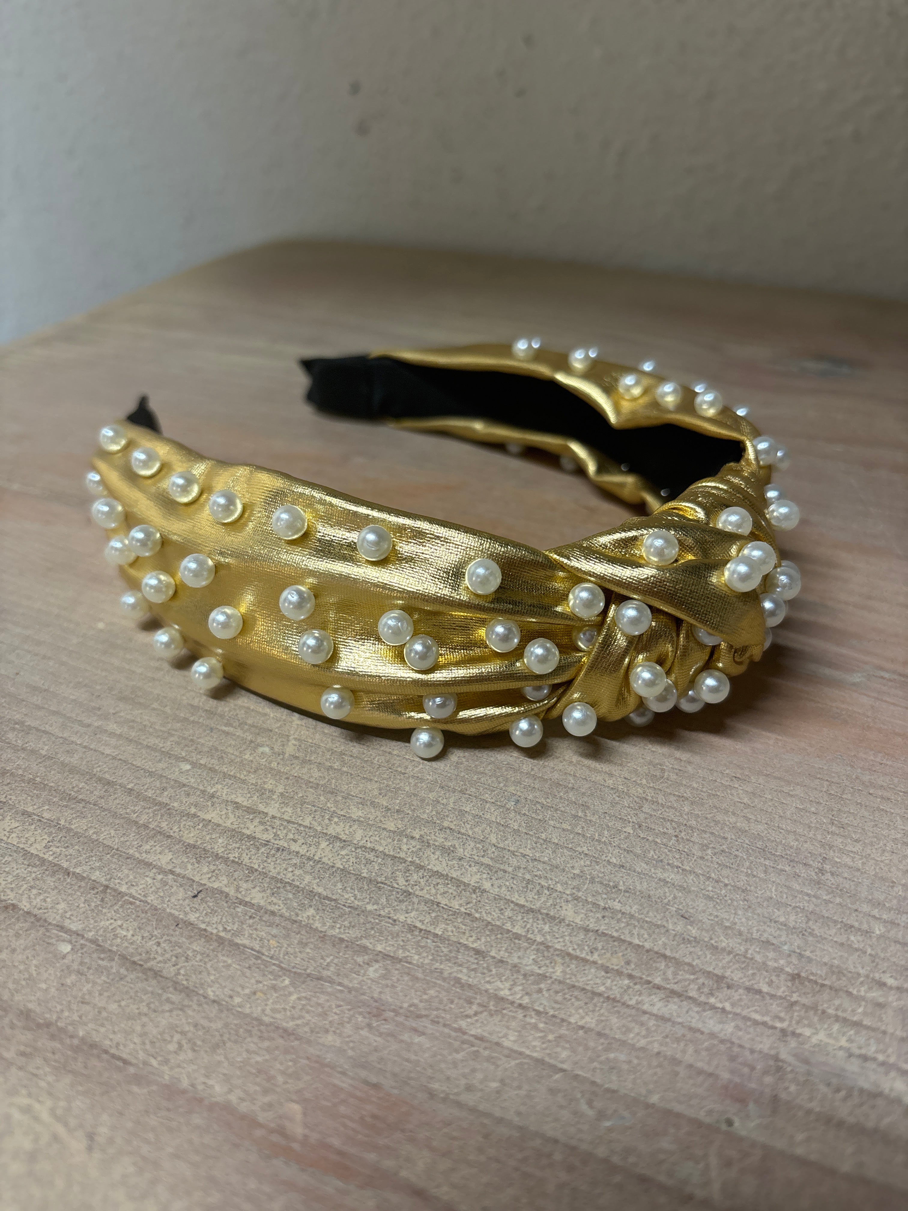 Radiate timeless elegance with our Metallic Gold Pearl Knot Headband — a luminous statement piece designed to elevate any look. Crafted from shimmering gold fabric, this headband features a chic center knot that adds texture and dimension with effortless sophistication.
