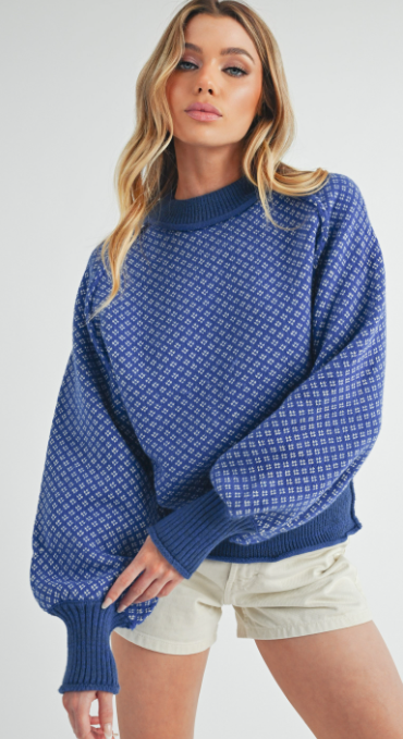 This soft pullover Echo sweater, crafted from a knit fabric, features an oversized fit with a chunky ribbed neckline and raglan sleeves. Its slouchy, oversized design includes ribbed trim, a chunky mock neckline, slouchy raglan sleeves with exaggerated cuffs, and a banded bottom hem. Elevate your knitwear collection with this versatile pullover, perfect for layering up or down.