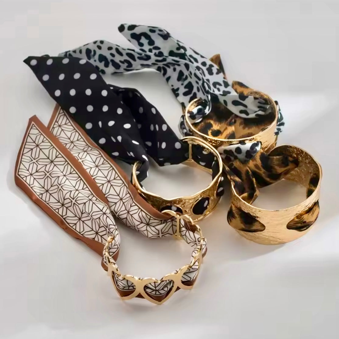 A sleek statement of modern elegance. Designed for versatility, it features a customizable detail that allows you to style it with any Twilly of your choice—adding a personal touch of color, texture, or pattern. Wear it wrapped, knotted, or draped for an effortlessly chic look that transitions seamlessly from day to night. Timeless yet playful, this cuff is the perfect balance of structure and self-expression.
