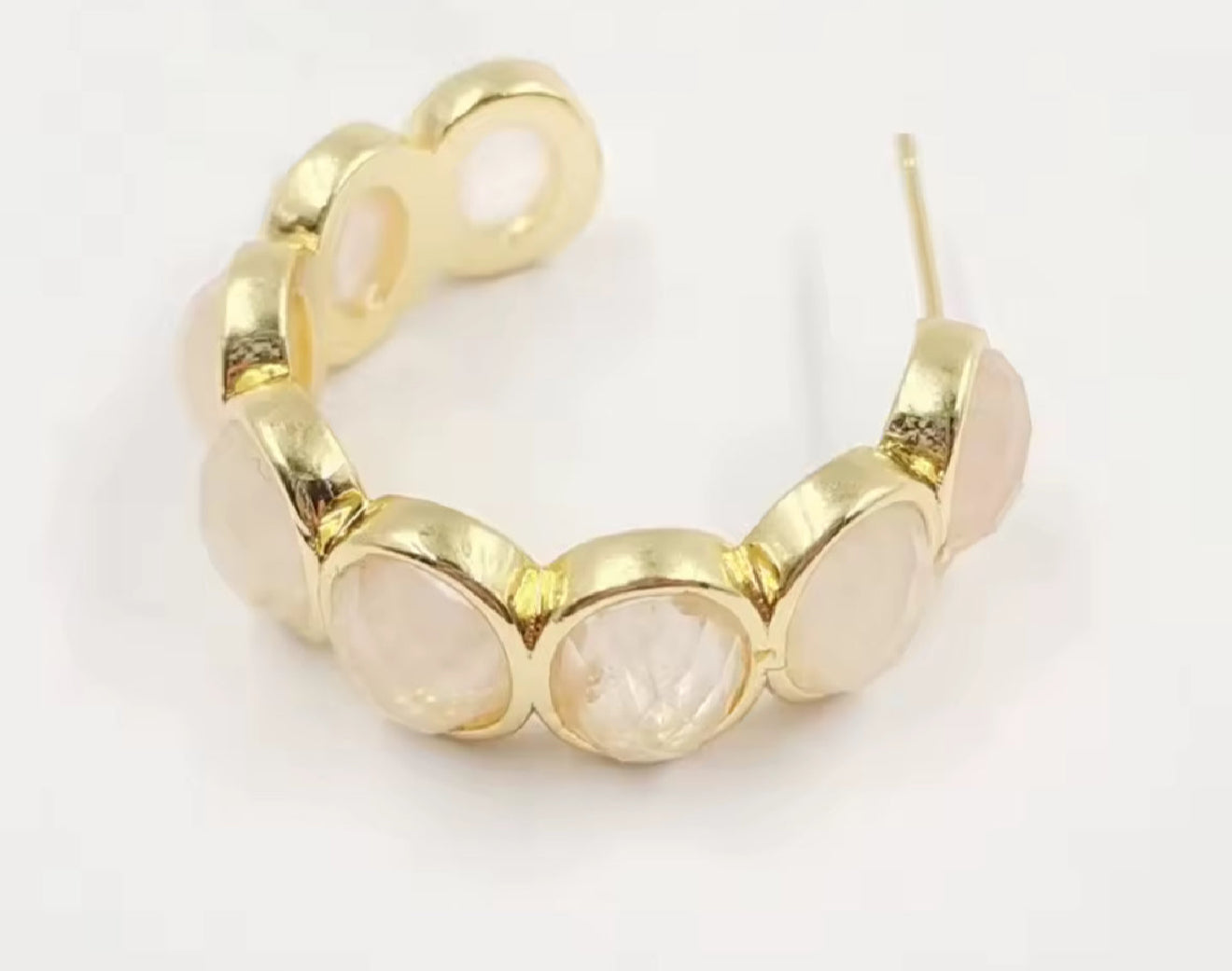Elegant & timeless, these Hudson Day gold hoops feature pink stones set along the curve for the perfect pop of color.