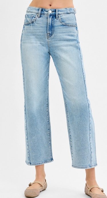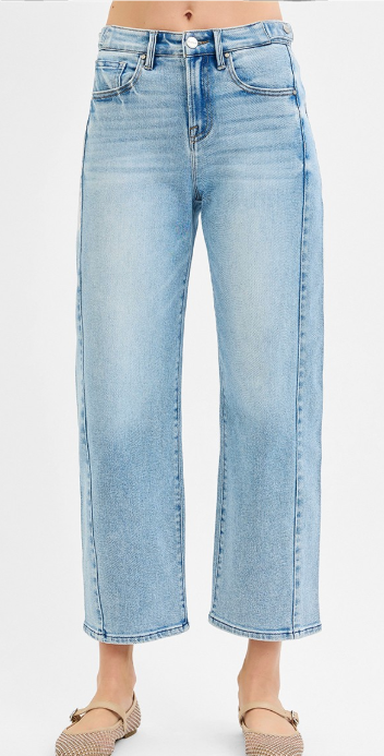 Modern structure meets everyday comfort in these high-rise crop barrel jeans. Designed to sit high at the waist, they create a flattering, elongated silhouette while offering a secure and comfortable fit.