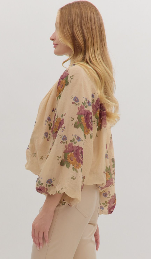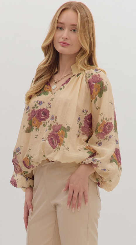Bring a touch of floral elegance to your wardrobe with the Blouse! This black woven top features a delicate blue, yellow, and orange floral print, long puff sleeves, and a shearing detail at the neckline for a softly structured look. Semi-sheer yet fully lined, it’s lightweight and effortlessly chic—perfect for a polished business casual outfit or dressed down with jeans for an elevated everyday look.