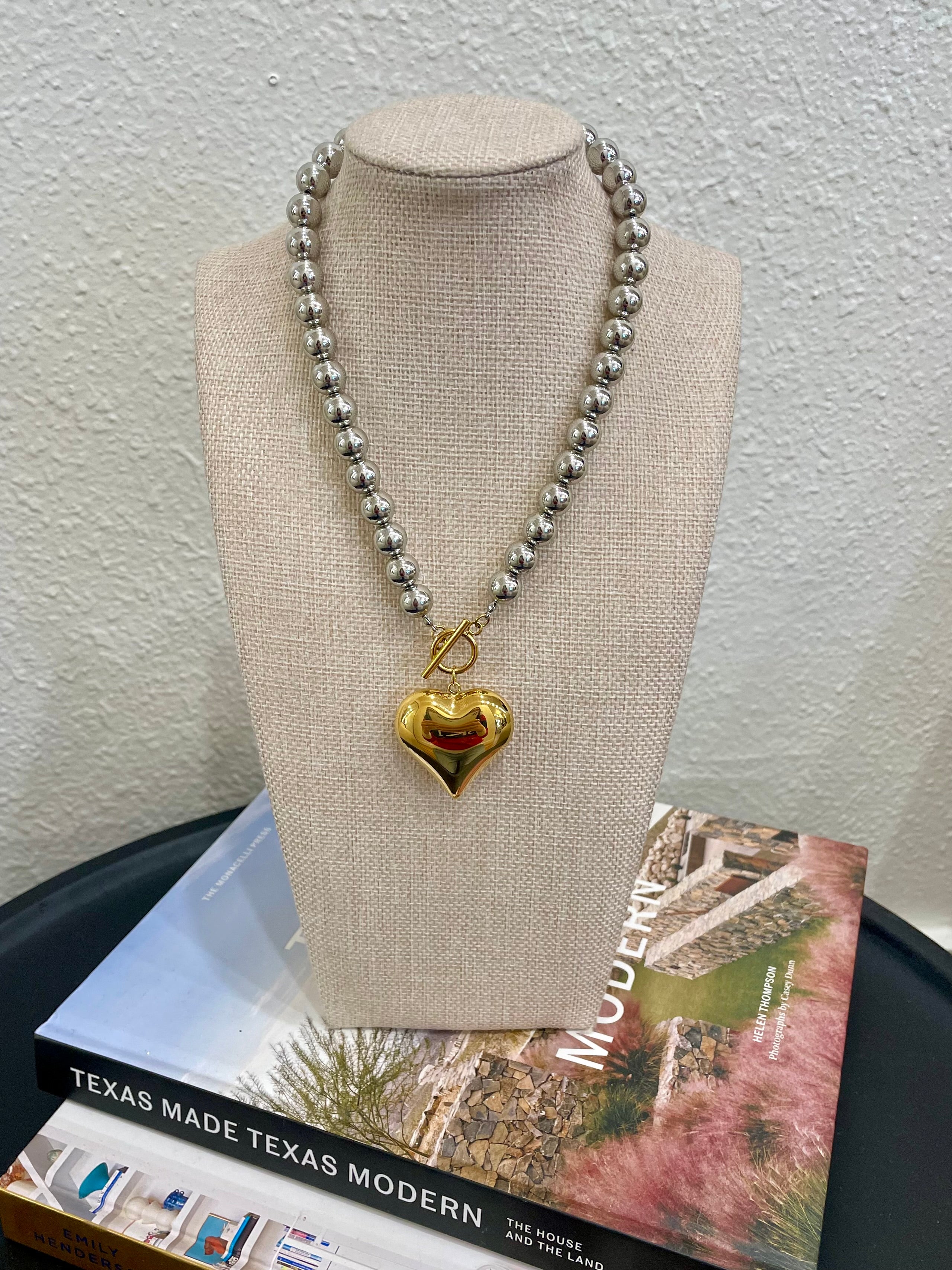 Mixed Metal Heart Charm Necklace