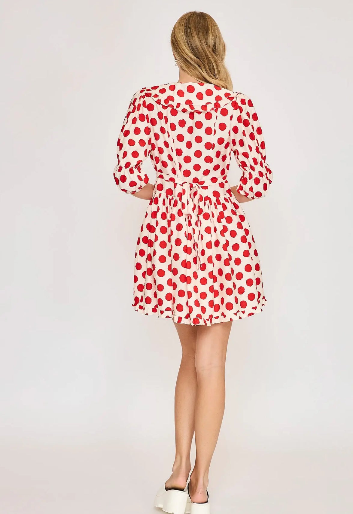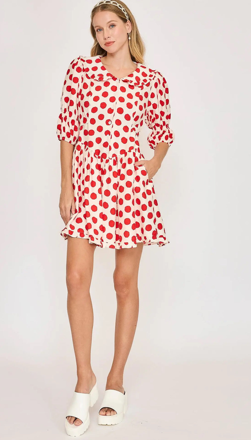 A darling take on a classic silhouette — this Peter Pan collared dress is playful, feminine, and full of charm. Designed with a polka dot print that never goes out of style and bubble sleeves that add a soft, romantic touch. It’s lightweight, unlined, and perfect for layering or wearing as-is for a timeless look.