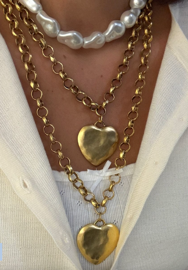 Bold, romantic, and impossible to miss. The Puffy Heart Necklace features a large, hammered heart pendant on a chunky rollo chain. Whether you wear it layered or solo, it adds instant drama and charm to any outfit.