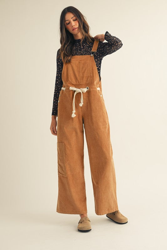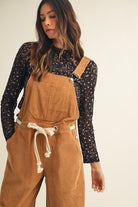Meet your new go-to fall favorite—these vintage-inspired brown corduroy overalls bring all the cozy charm with a stylish, modern twist. Made from soft, textured corduroy, they feature a relaxed silhouette with adjustable straps and a rope-style waist tie that adds a natural, effortless touch.