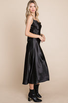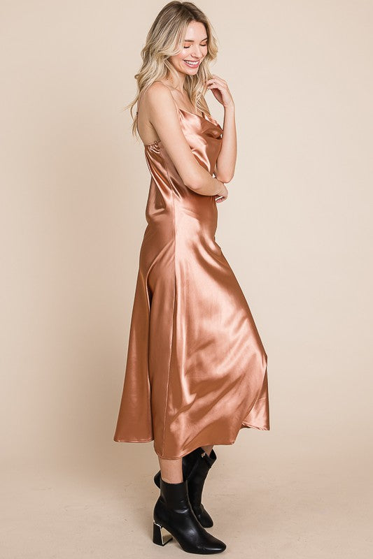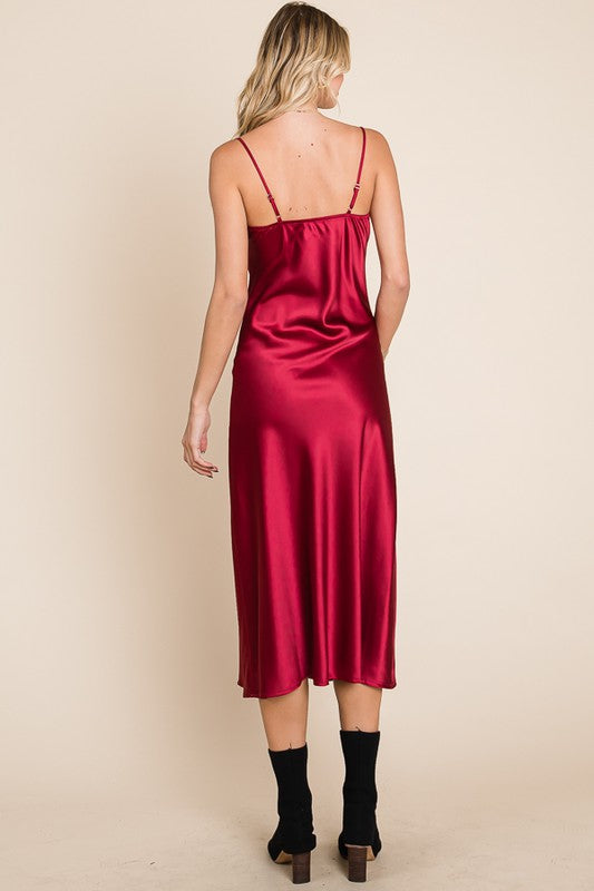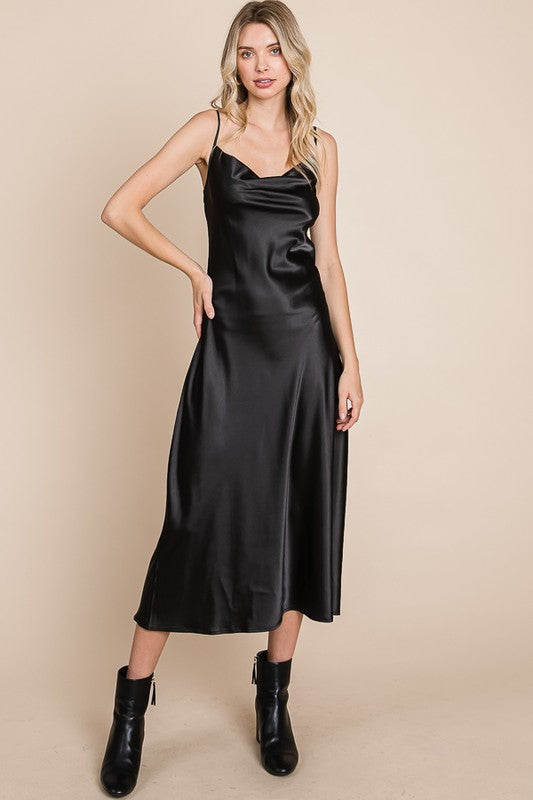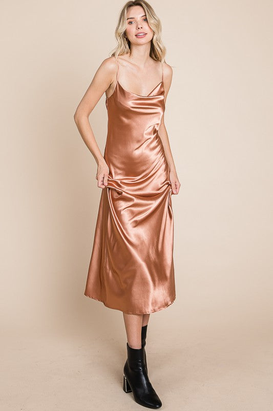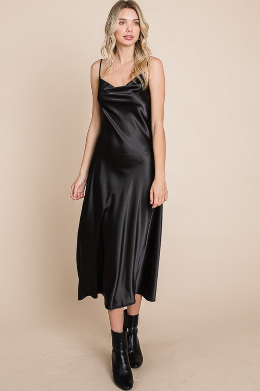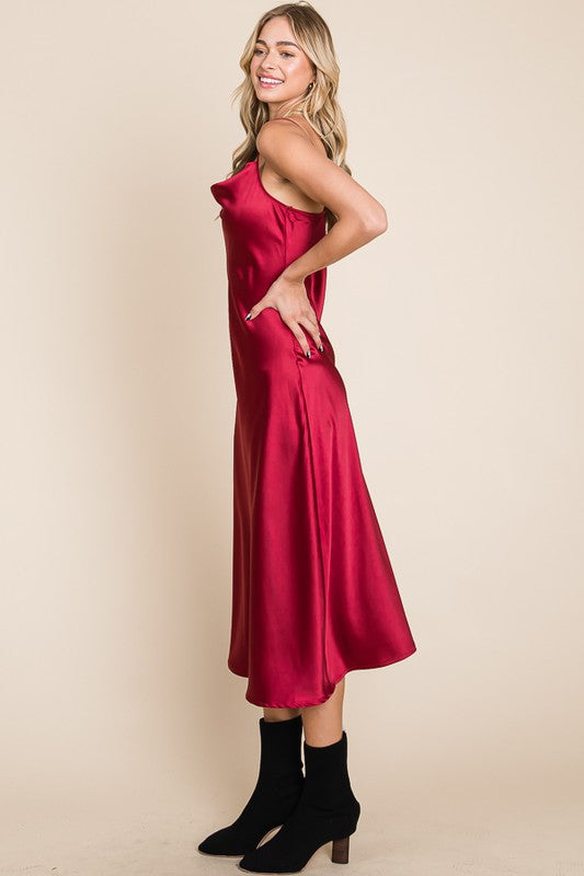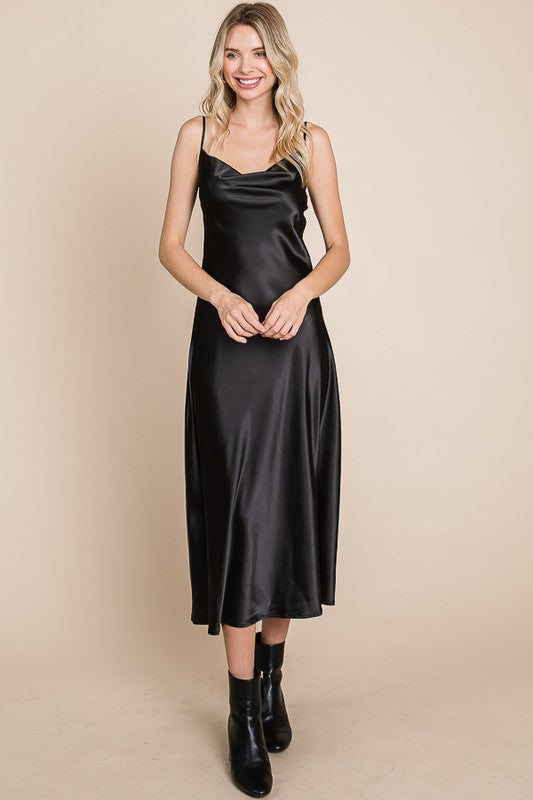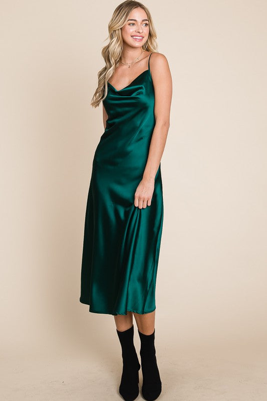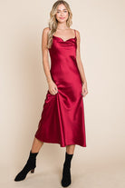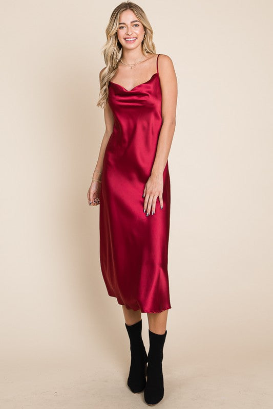 Slip into luxurious comfort with our Serene Slip Dress. The satin cowl neck and adjustable straps provide a sleek and sophisticated look, while the midi length adds a touch of elegance. Available in multiple colors for versatile styling. Slay all day in style!