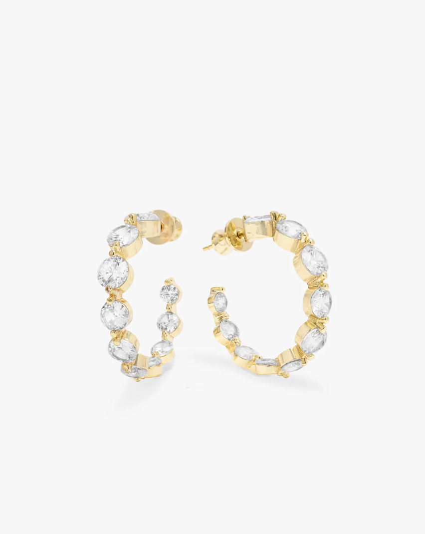 The She's an Icon Hoops .75" are the perfect dainty gold staple, delivering just the right amount of brilliance for everyday wear. These elegant 3/4 inch hoops feature graduated round simulated diamonds, which sparkle beautifully against the luminous 18k gold plated setting. Designed to be sophisticated and subtle, this size is ideal for those who favor a minimalist yet luxurious accessory that works for any occasion. They are the perfect plus-one for any event but can also make any day just a little bit more special.