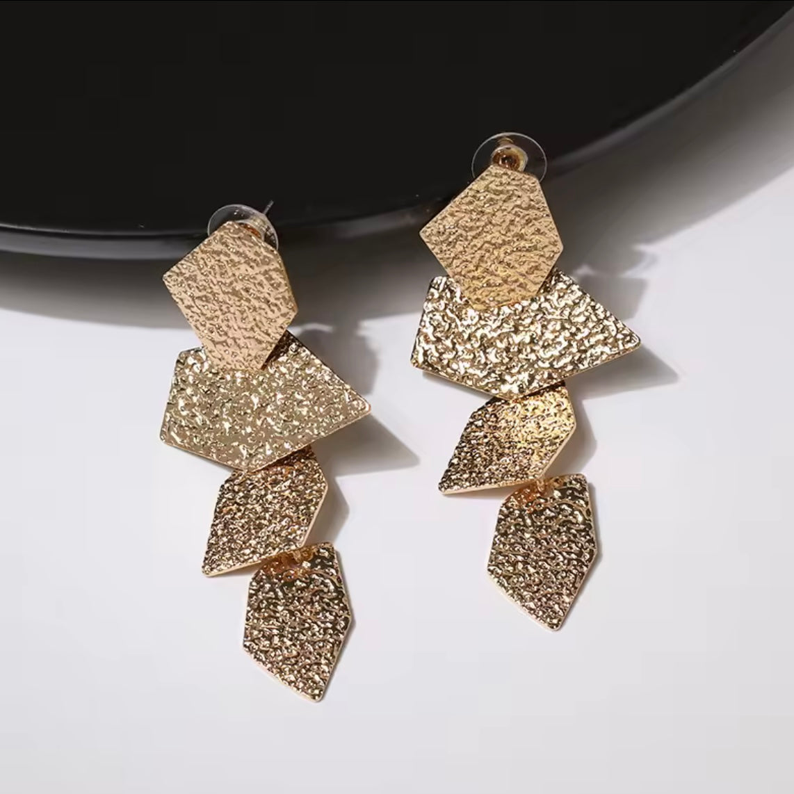 These 3-inch earrings feature a textured, yet polished finish and an elegant silhouette. Lightweight and crafted for everyday wear.