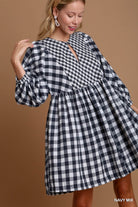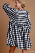 The Willow Dress is the perfect blend of comfort and charm! This navy contrast plaid baby doll dress features three-quarter sleeves and a breezy, throw-on-and-go fit that keeps things effortlessly cute. A dainty button enclosure at the top adds just the right touch of detail. Easy, flattering, and timeless — it’s a dress you’ll love for any day of the week.