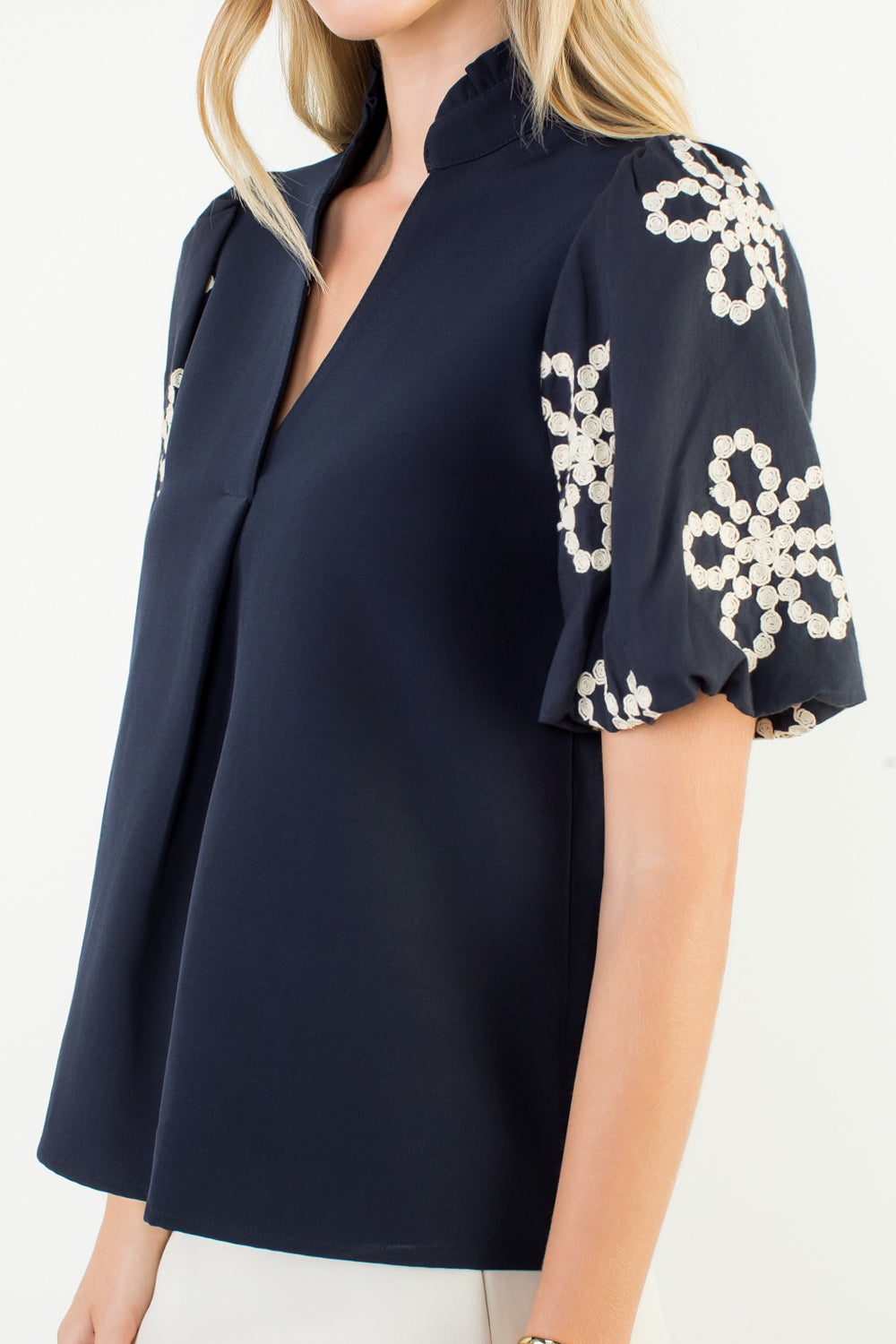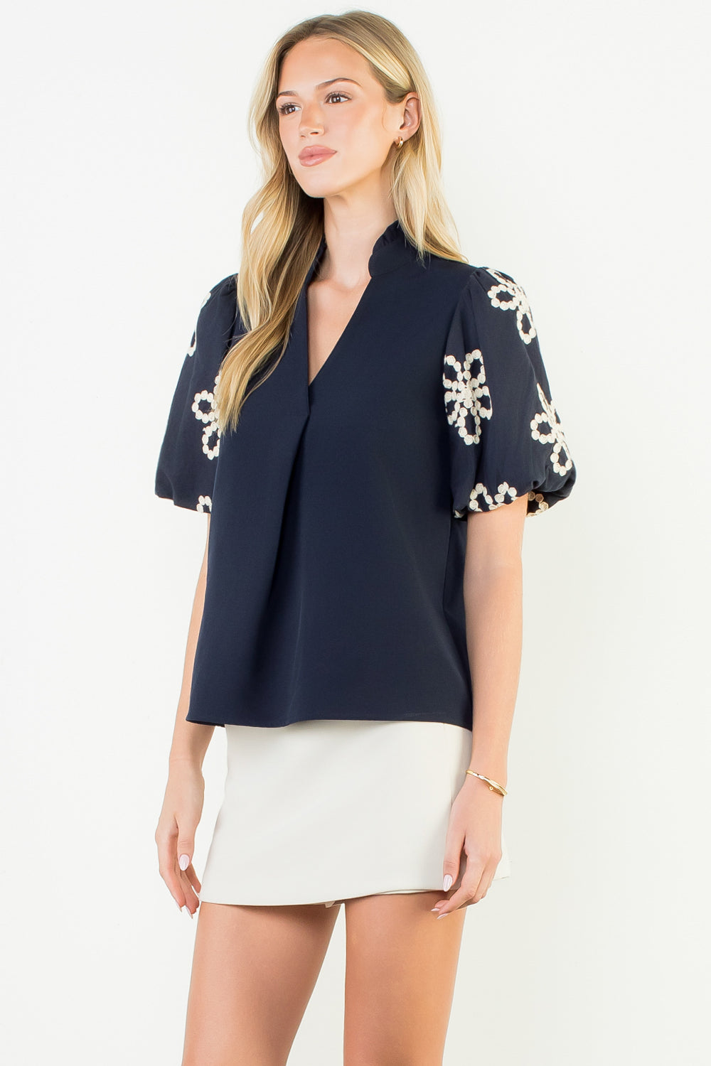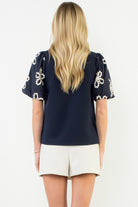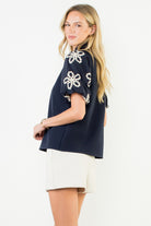The Coastal Charm Top by THML is where classic meets playful! The deep navy color gives it a timeless feel, while the puff sleeves bring all the fun with their beautifully embroidered, colorful design. It’s effortlessly chic — perfect for pairing with blue jeans, white jeans or a cute skirt for that easy, put-together look with a pop of personality.