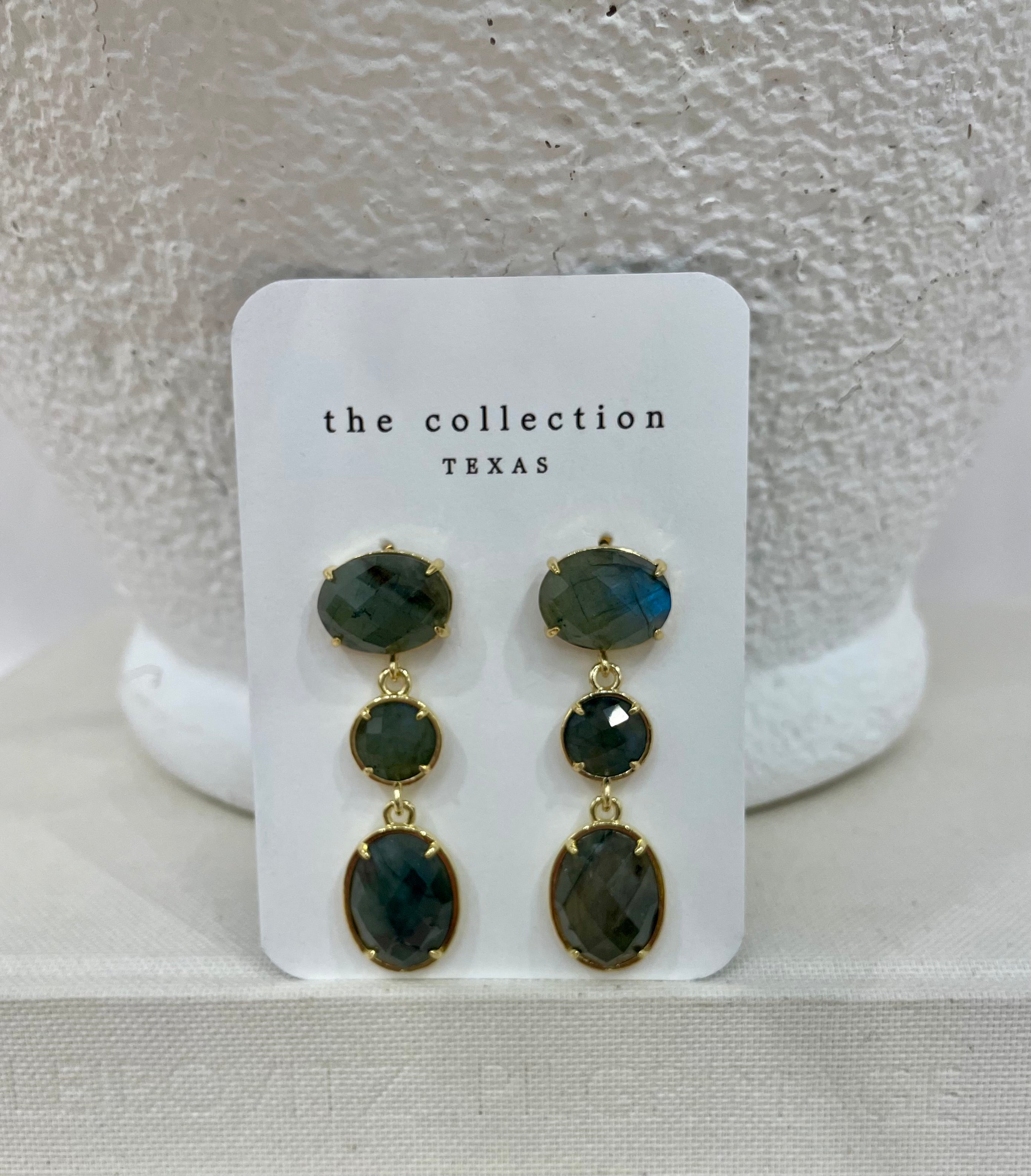 Effortlessly elevate your style with our Triple Stone Earrings. Crafted with 18K gold plating, these earrings add a touch of luxury to any outfit. Perfect for any occasion, these earrings will become your go-to accessory for a stunning look.