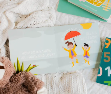 • Use simple words and charming illustrations to teach children that God loves and cares for them