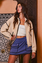 Wrap yourself in cozy-chic with this super soft pluffy jacket in a versatile taupe, accented by sleek black contrast piping. Designed for both warmth and style, this jacket features a lightweight yet plush feel that keeps you snug without the bulk. The tailored contrast piping adds a polished, modern edge to the classic puffer vibe. Perfect for everything from casual coffee runs to chilly nights out, this jacket layers effortlessly over sweaters, leggings, or denim for an elevated cold-weather look.