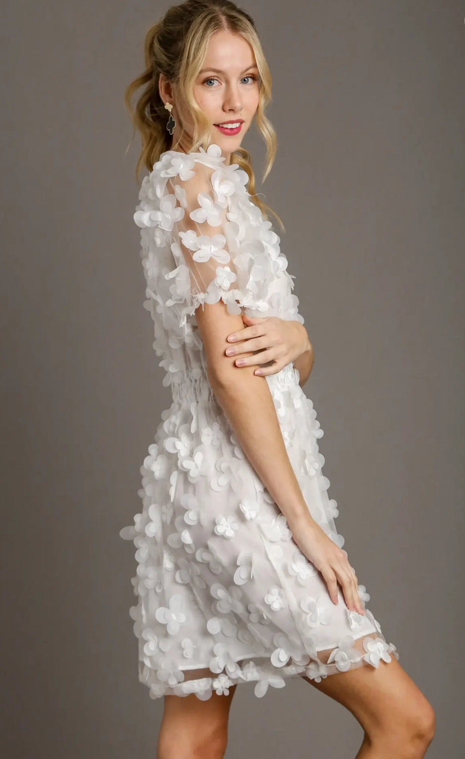 A butterfly-print dress with small puff sleeves is a sweet and whimsical piece that exudes effortless charm. The delicate butterflies seem to flutter across the fabric, adding a touch of lightness and romance. The small puff sleeves give it a soft, feminine silhouette — just enough volume for a vintage-inspired look without being overdone. Perfect for spring days or garden gatherings, this dress pairs beautifully with simple heels or sandals for an airy, graceful finish.