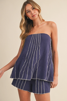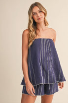 Effortlessly cool and vacation-ready, this two-piece short set is the definition of laid-back chic. Featuring a strapless, flowy top and matching relaxed-fit shorts, this set is designed for comfort without sacrificing style.