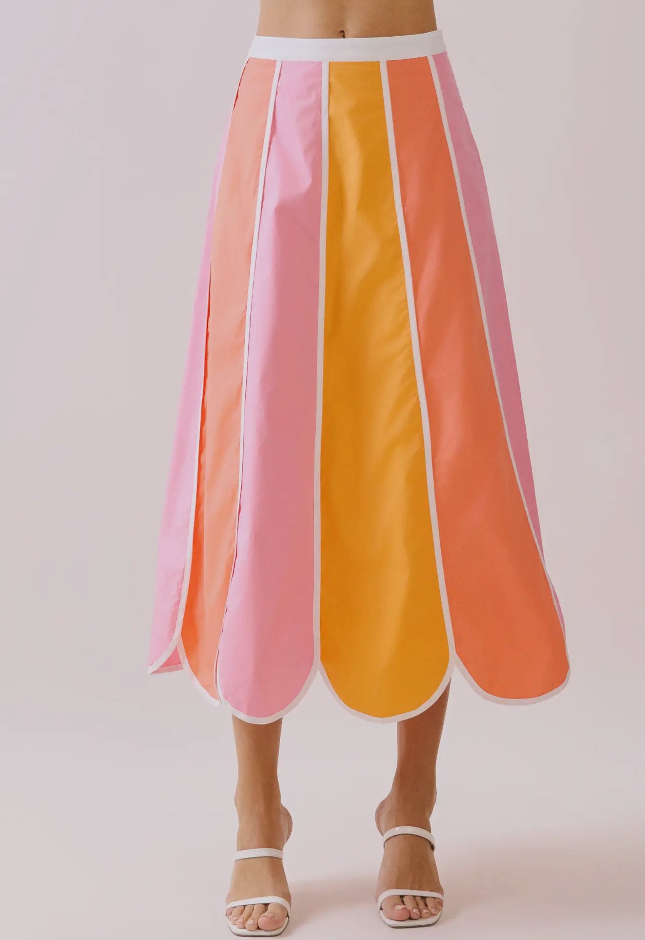 Paired with the matching color-block skirt, this set feels perfectly coordinated while still light and wearable. Style it together for a polished statement or mix and match with your favorite staples for endless outfit options. Chic, feminine, and made for sunny days and special moments alike. ✨