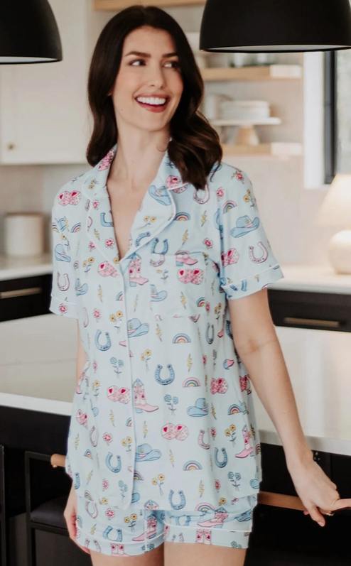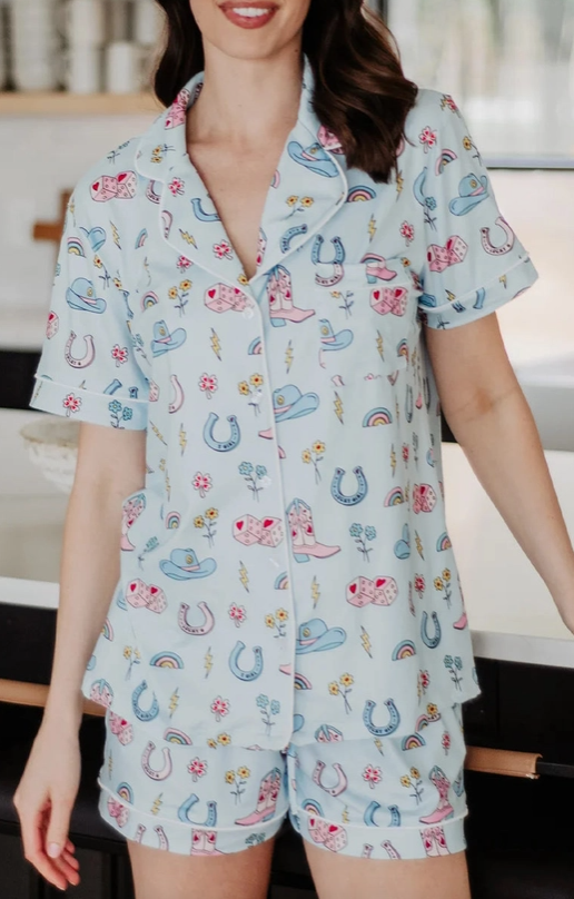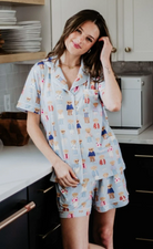 Made from buttery-soft fabric, the PJ Short Set includes a relaxed button-front top and coordinating shorts designed with an elastic waistband and adjustable drawstring for an easy, flattering fit. Lightweight and breathable, it is perfect for lounging, sleeping, traveling, and gifting.