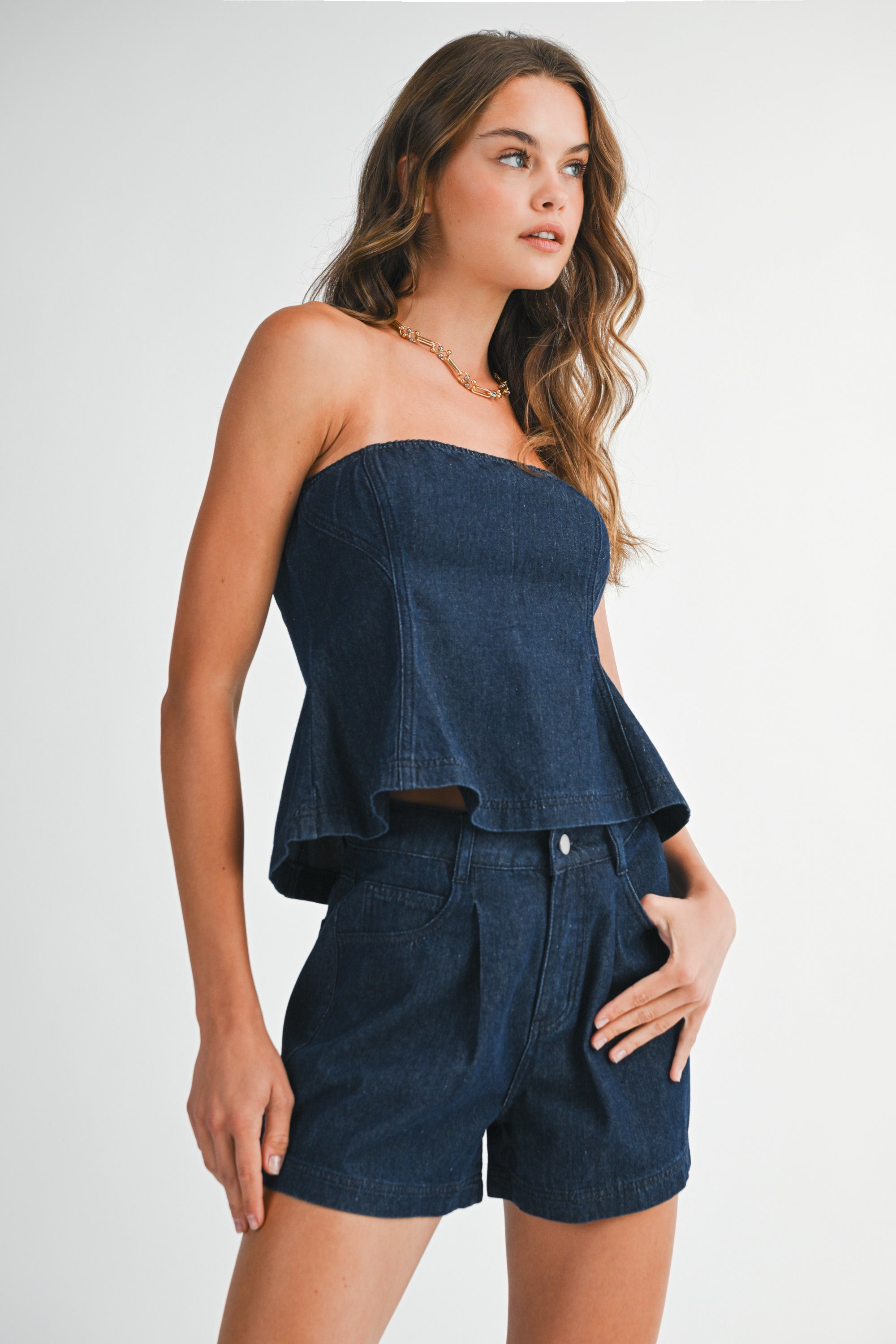 Say hello to your new denim obsession! 💙 This fit-and-flare tube top and matching short set comes in a sleek dark denim that’s equal parts chic and playful. The tube top has a flattering flare shape that highlights your waist while still giving that easy, breezy feel. Paired with the tailored shorts, it’s a total knockout look—perfect for summer nights out, concerts, or even layered with a jacket for fall. Wear them together for the ultimate statement set, or mix and match for endless outfit combos!