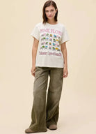 A Momentary Lapse of Reason by the psychedelic experimenters stood as a compelling reinvention of Pink Floyd's sound in the post-Roger Waters era. A rendition of its cover art featuring repeating beds lands center chest with the locations of their sold out shows listed on the back. Meant to feel like a true concert keepsake. Accented in puff ink.