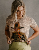 Dress it down with classic blue jeans and boots, or give it a trend-forward twist by pairing it with a denim or fringe skirt. Whether you’re two-stepping or just showing off your love of iconic music legends, this tee brings a little stardust to every outfit.