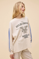 The originator of the Outlaw movement, Waylon Jennings, hits this OS Long Sleeve that gives a nod to the gritty star’s rebellious country sound. Stamped with the icon’s name, an eagle emblem and a shoutout to his hometown. Designed with double sleeve stripes and star accents for a collegiate influence.