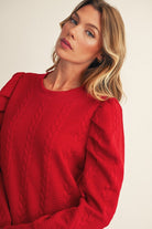This casual top features a puff shoulder with textured braid and pintuck detail on the sleeves. It is perfect for game day or holidays. The model wearing a size Small is 5'8".