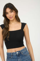 This textured knit sleeveless crop top is a closet staple with endless styling potential. Featuring a sleek, close-to-the-body fit and chic cropped length, it’s available in both classic white and timeless black. Perfect for layering under blazers, pairing with high-waisted denim, or dressing up with a statement skirt for a night out.
