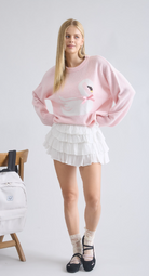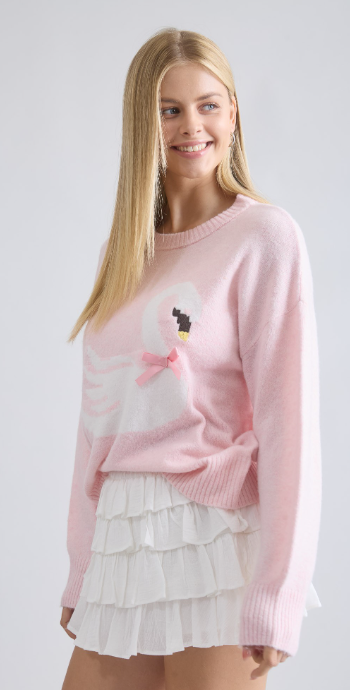 Soft, cozy, and effortlessly charming, the Bow-Kissed Swan Sweater blends whimsical elegance with everyday comfort. Crafted from a plush knit fabric, this pullover features a delicate swan motif accented by graceful bow details, creating a romantic, storybook-inspired look. The relaxed silhouette makes it easy to layer, while ribbed cuffs, neckline, and hem provide a snug, flattering finish. Perfect for pairing with skirts, denim, or tailored trousers, this sweater adds a touch of refinement and sweetness to any cold-weather wardrobe.