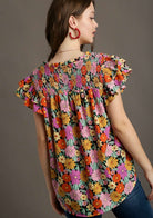 This split-neck floral printed York top is a standout blend of feminine detail and effortless charm. Designed with a flattering split neckline and delicate smocked accents, it offers beautiful texture and shape while staying comfortable and easy to wear. The layered ruffle sleeves add soft movement and a romantic touch, perfectly complementing the floral print.