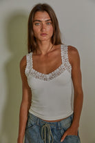 A classic with a feminine touch—this tank top features delicate lace trim along the neckline and straps, adding just the right amount of detail to a timeless silhouette. Available in both crisp white and sleek black, it’s the perfect layering piece for under cardigans, blazers, or worn on its own for an effortlessly chic look.