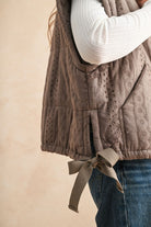 This lace crochet trim puff vest is fall’s sweetest staple. Available in crisp white and cozy mocha, it features delicate lace detailing, dainty side ties that bow up for the prettiest finish, and functional buttons for styling versatility. The mock collar adds a modern touch to this romantic-meets-rustic must-have.