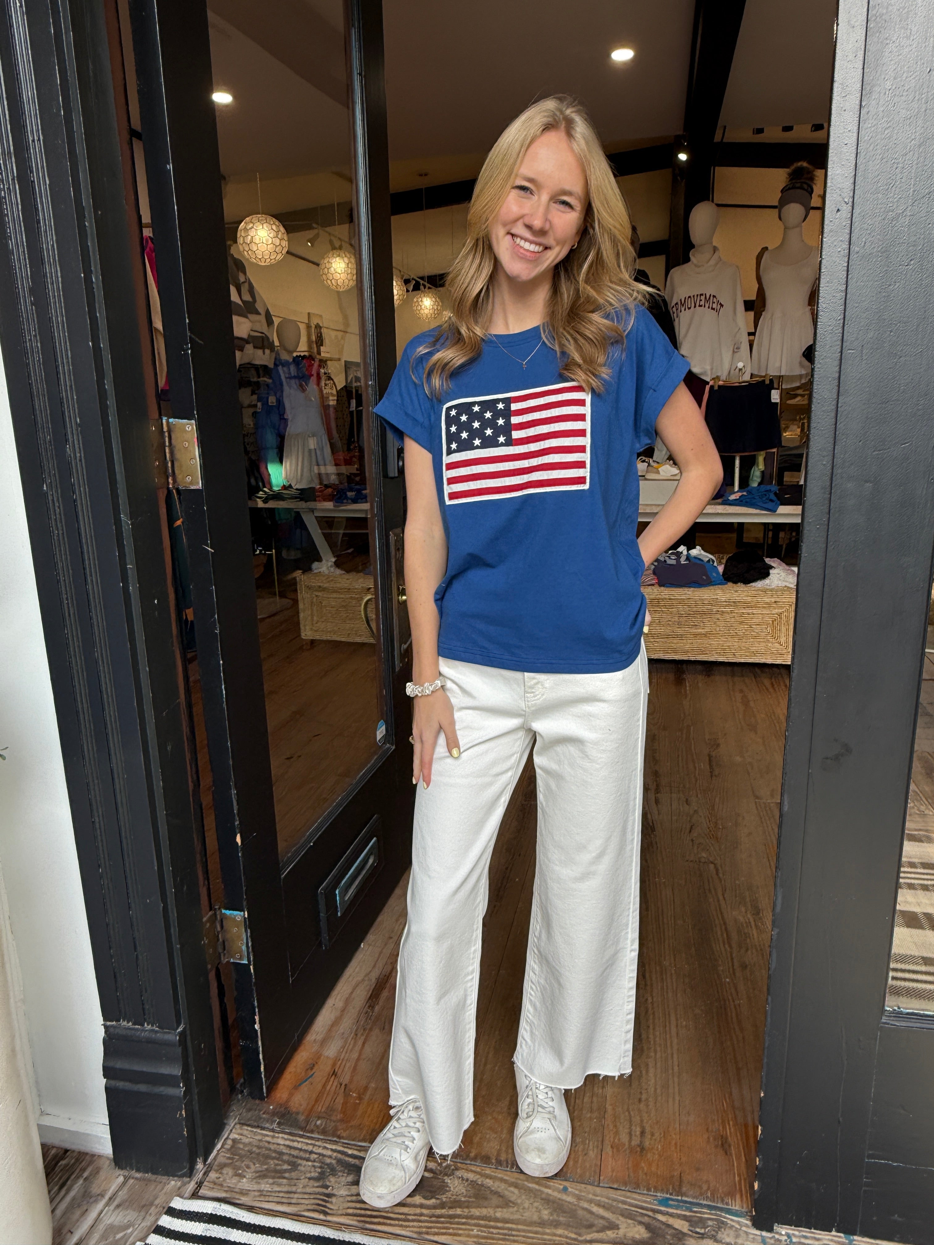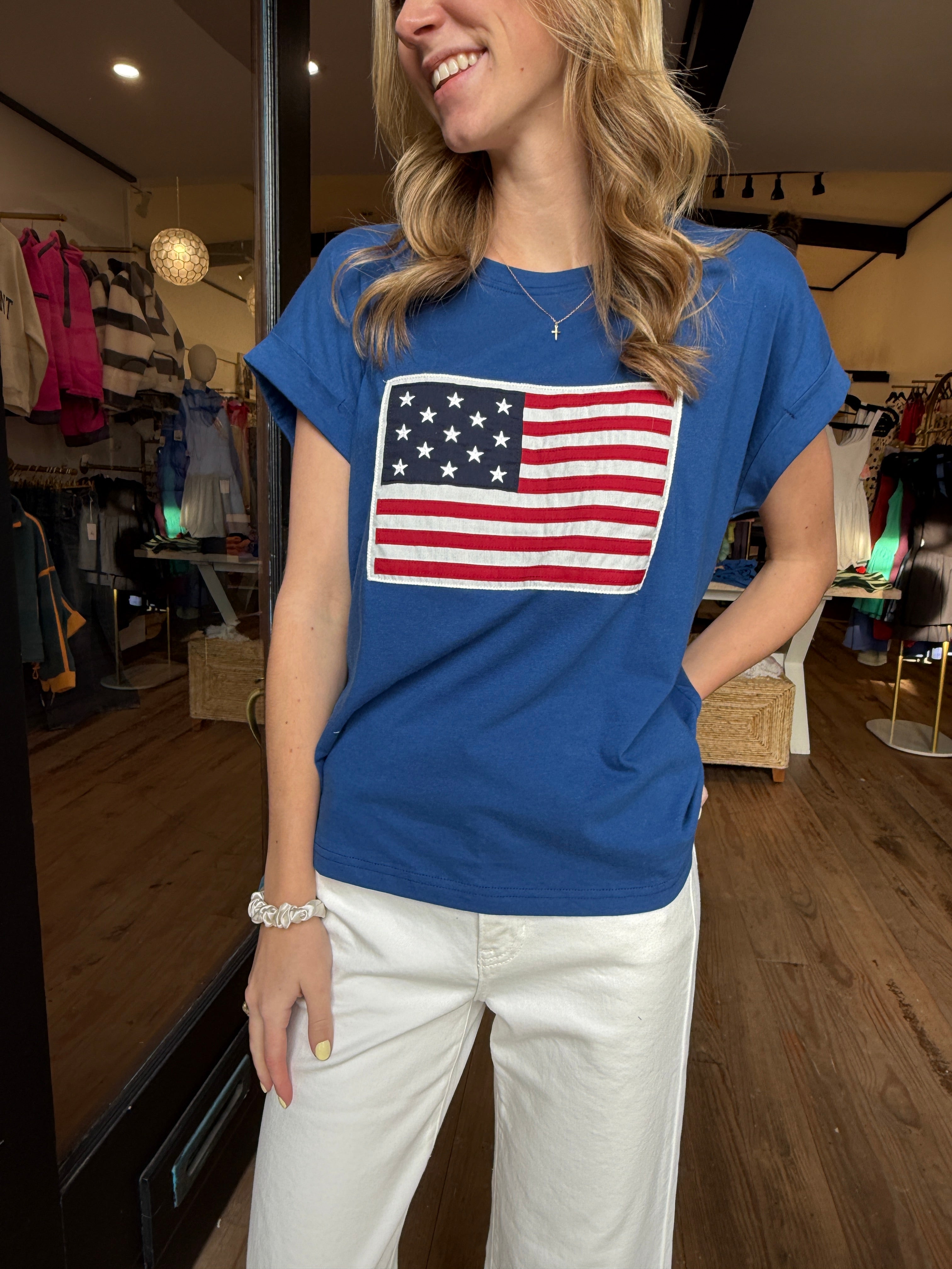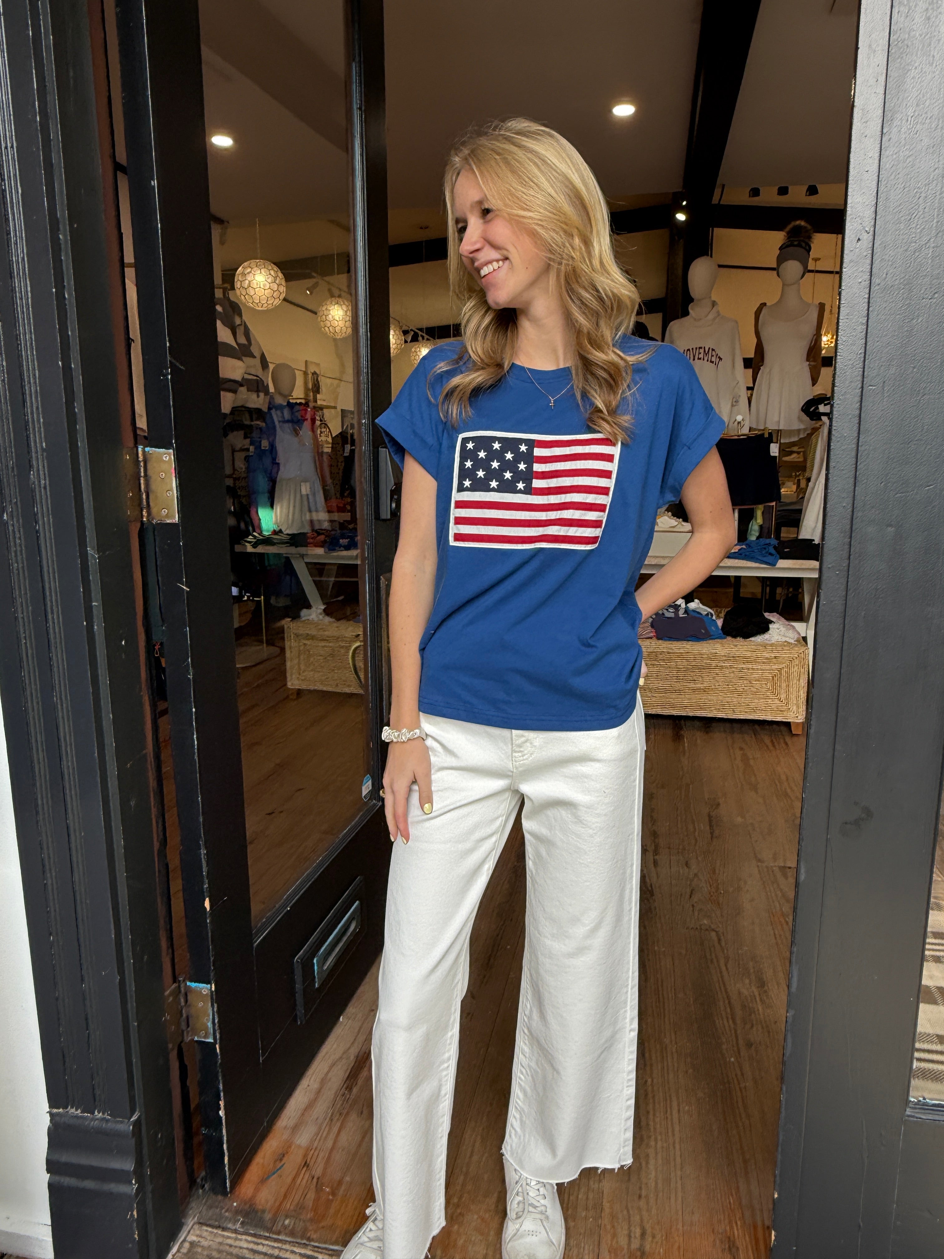A royal blue American flag tee that’s equal parts classic and effortless. Soft, comfortable, and easy to style, it’s perfect for the Fourth of July, summer celebrations, or showing your American pride every day. A timeless staple you’ll reach for year after year 🇺🇸✨