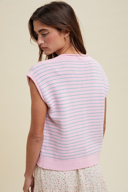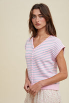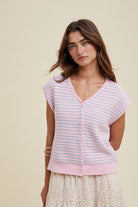 Turn up the charm with this irresistibly flirty pink button-up sweater top, accented with playful turquoise stripes. The soft, cozy knit and functional buttons make it as versatile as it is adorable—wear it open over a cami or buttoned up for a sweet, polished look. Perfect for coffee dates or casual outings, this cheerful combo will have you feeling as cute as you look!