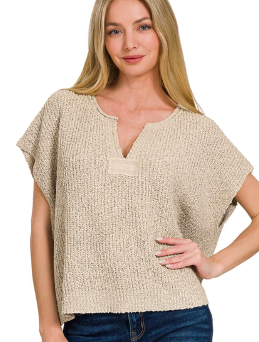 Effortless, elevated, and endlessly wearable—this pullover is the definition of laid-back chic. Designed with a relaxed silhouette, it features a rolled split-neckline for that perfectly undone vibe, side slits for easy movement, and a statement back patch detail that gives it a modern edge. Toss it on and go—this one does all the work for you.