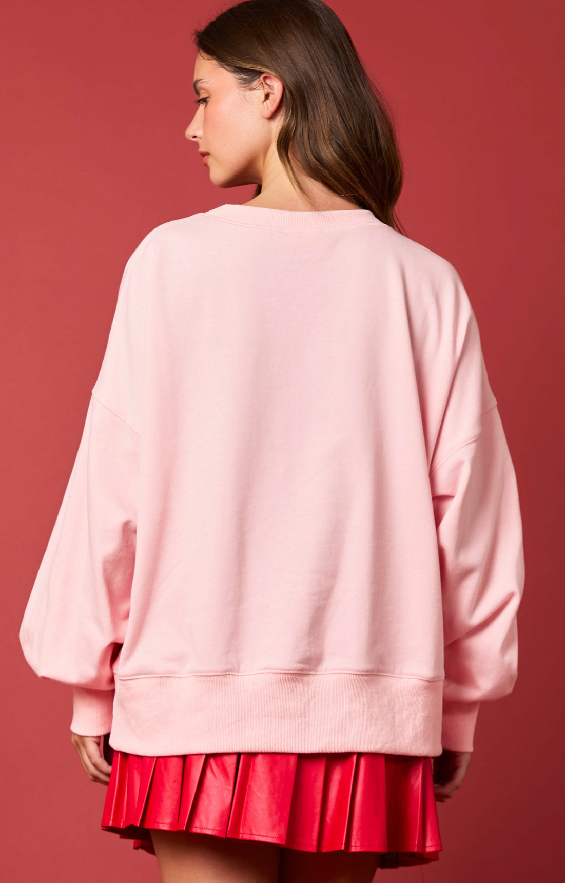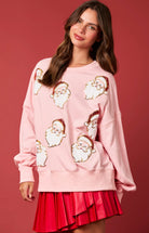 Get festive in the cutest way with this oversized pink terry sweatshirt featuring a sparkling sequin Santa with fluffy fur embroidery. The cozy terry fabric and relaxed fit make it perfect for holiday lounging, yet the playful details bring all the merry vibes.