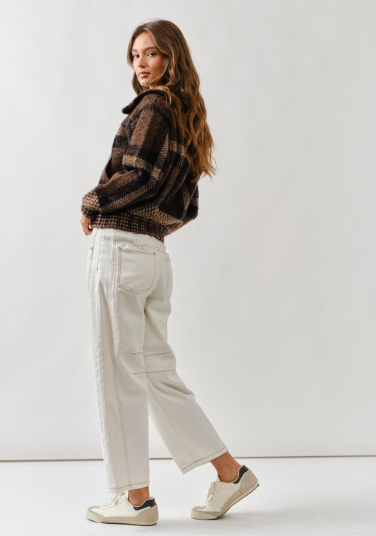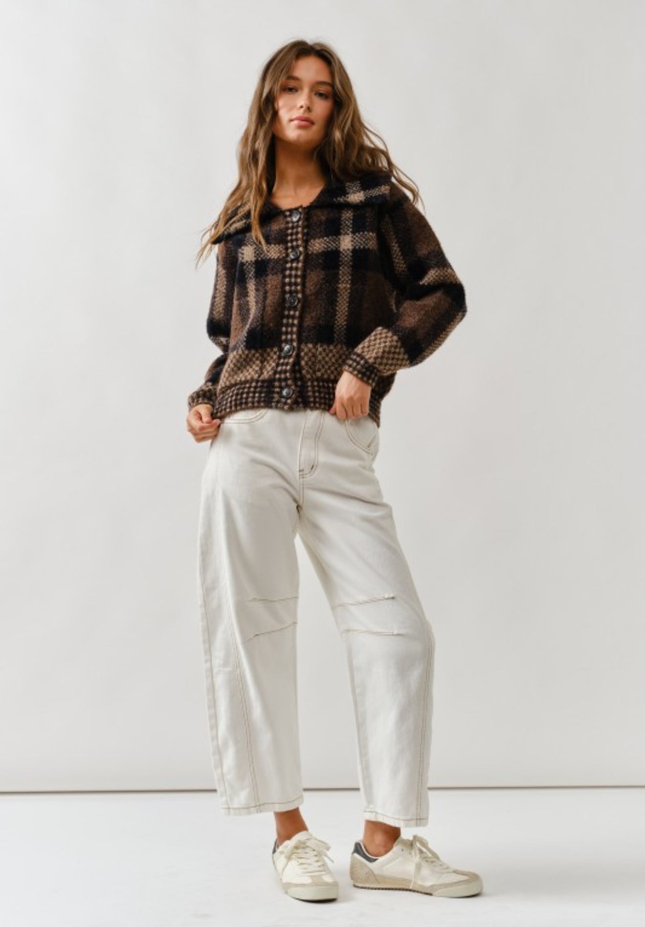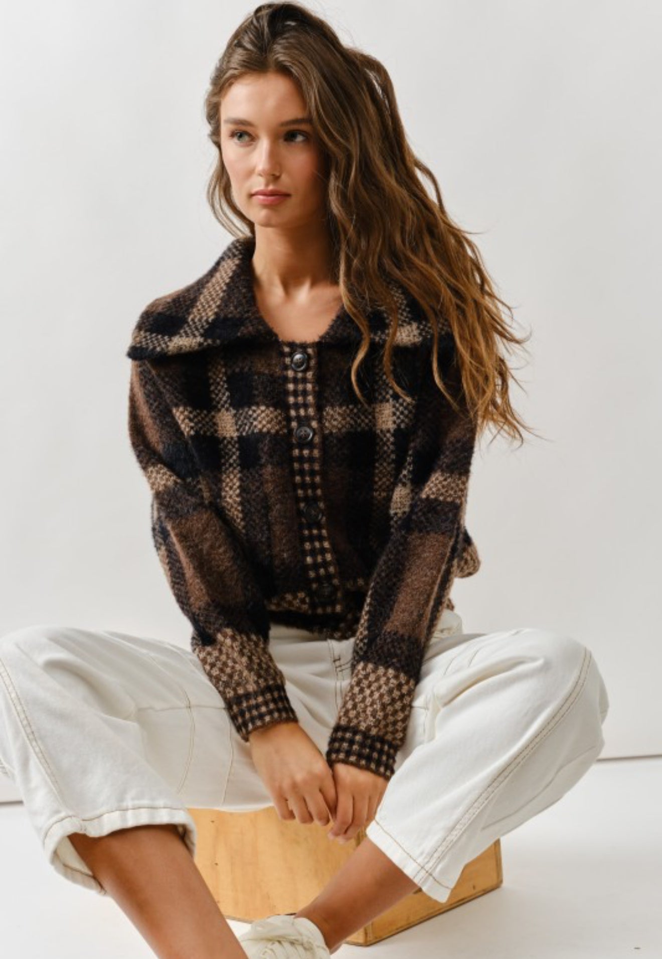 A timeless plaid button-down jacket crafted with a soft, mid-weight fabric for layering through fall and winter. Featuring relaxed fit, classic collar, front pockets, and button closures, this versatile piece doubles as a shacket or lightweight coat — perfect over tees, hoodies, or knitwear.