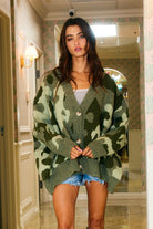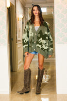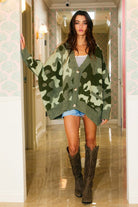 Slip into cozy comfort with our Hide Away cardigan. This oversized camo knit is the perfect blend of laid-back style and everyday ease. With its relaxed fit and soft, snuggly feel, it’s made for layering over your favorite basics—whether you’re lounging at home, running errands, or sneaking away for a little “me time.” A cool twist on a classic print, this camo cardigan is the ultimate throw-on-and-go piece.